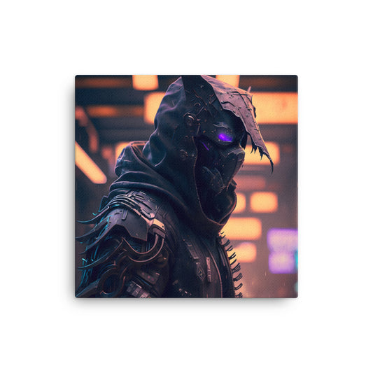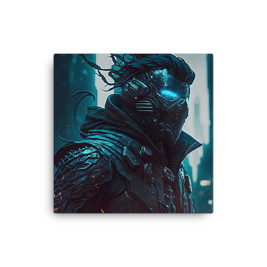 Cyberpunk Man Wearing Black Futuristic Armor || Canvas Print